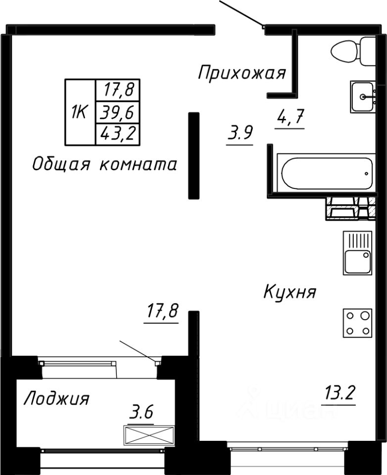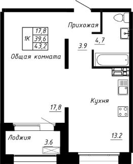Общая площадь43,2 м²