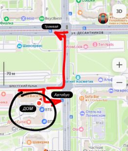 2 минуты до остановки общественного транспорта.