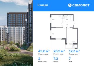 Строим кварталы для жизни с заботой о будущем. Предлагается 2-комнатная квартира комфорт-класса 49,62 кв.м в корпусе 7.2 на 7 этаже, в ЖК "Сандэй"