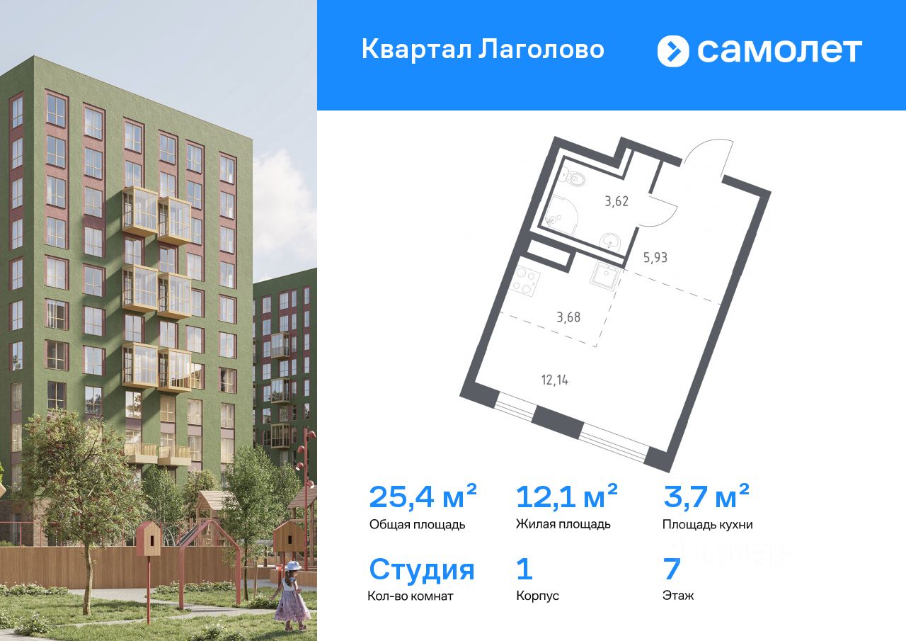 Строим кварталы для жизни с заботой о будущем. Предлагается квартира студия комфорт-класса 25,37 кв.м в корпусе 1 на 7 этаже, в ЖК "Квартал Лаголово"