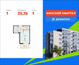 Продается квартира площадью 35.76 кв. м с отделкой white box. Квартира расположена на 1 этаже 7 этажного дома, в жилом комплексе комфорт-класса "Финский Квартал".