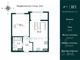 Стильная 1-комнатная квартира 37,92 м² с увеличенной кухней-гостиной в бизнес-классе ARTквартал!