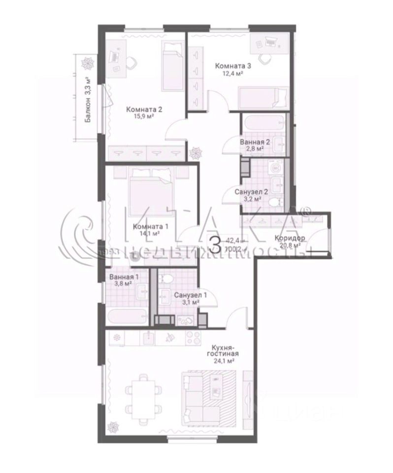 123985690 Продаётся просторная трёхкомнатная квартира в современном ЖК.