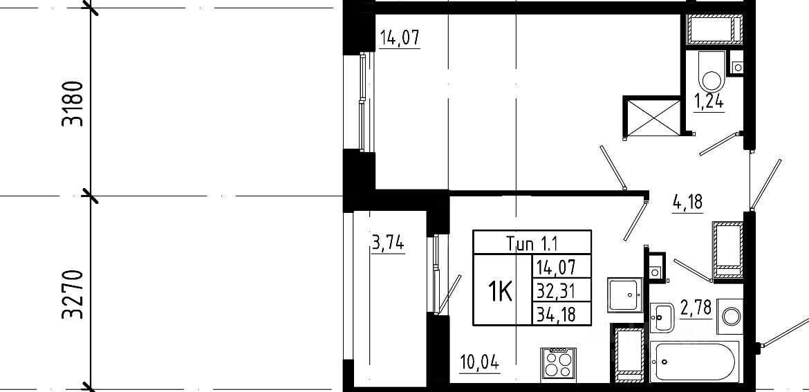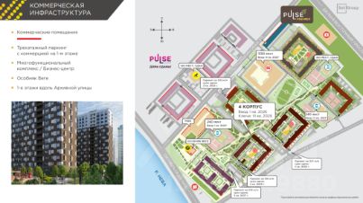 Однокомнатная квартира в корпусе 4.2 ЖК Пульс Премьер на 11 этаже, общей площадью 32,31 кв.м. Высокие потолки (2,77 м), балкон и раздельный сан.узел. Вид из окон в тихий благоустроенный двор. Сдается с качественной чистовой отделкой.