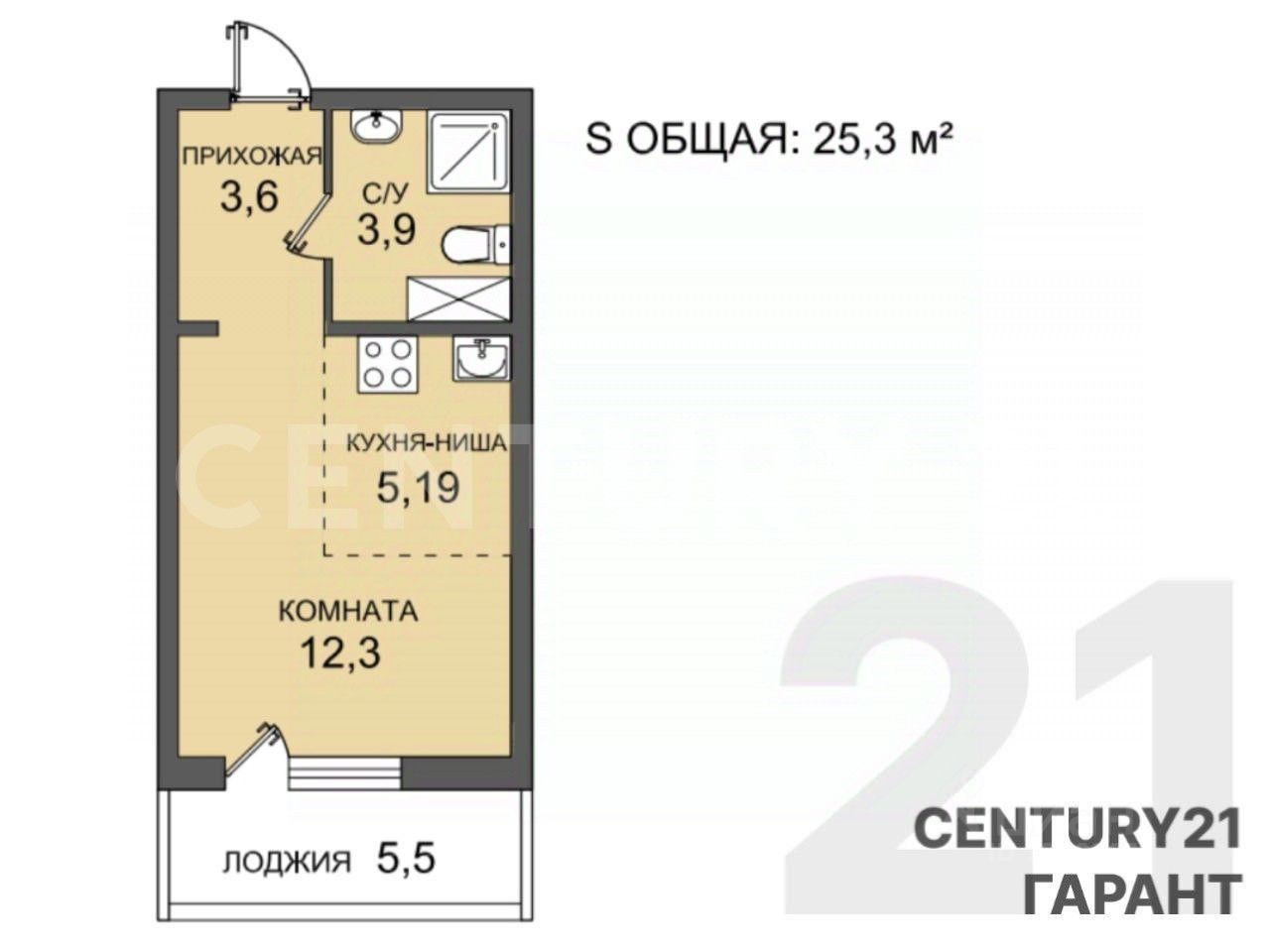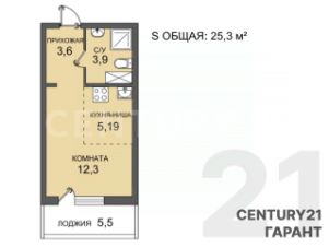 Общая площадь: 25,3 м²