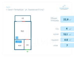 Sобщ. 22, 8/S жил 15/ S с/у 4,03/ S лоджии 4,6кв.м, h 2,75м
