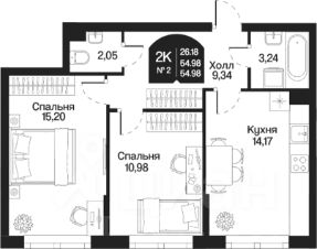 -Общая площадь: 54,98 м²