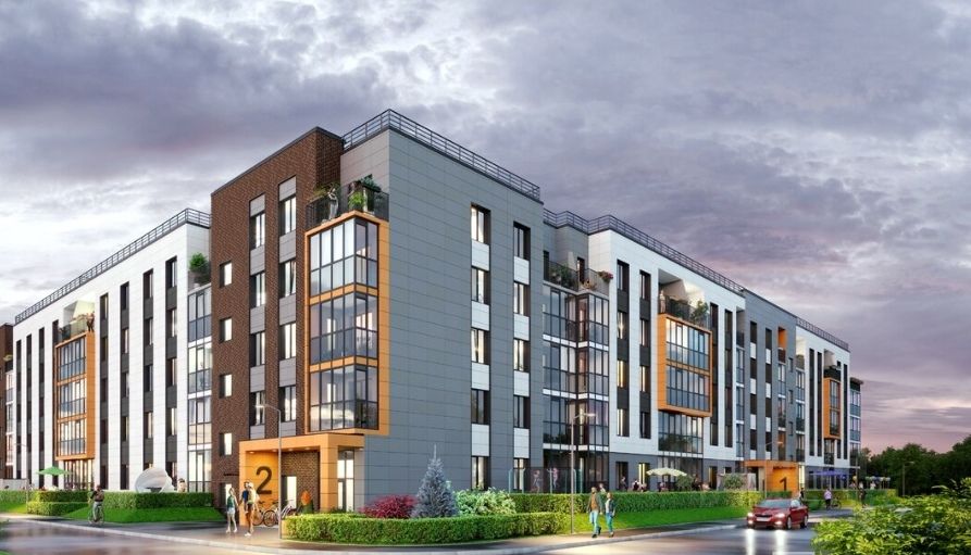 • Фасады из керамогранита и кирпича с яркими и акцентными входными группами.