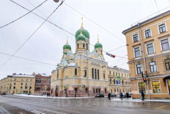 Прямо рядом с домом находится Исидоровская церковь, чуть дальше по Лермонтовскому - Синагога.