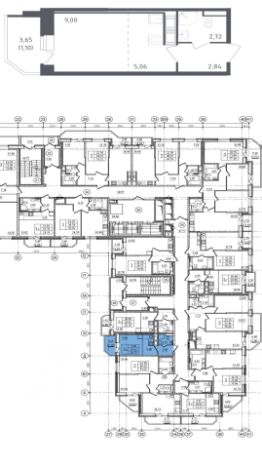 Окна выходят во двор. Благодаря высокому этажу будет прекрасный панорамный вид.