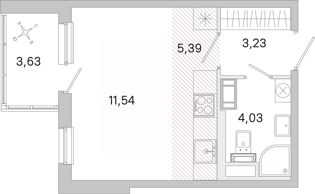 Общая площадь24,19 м²