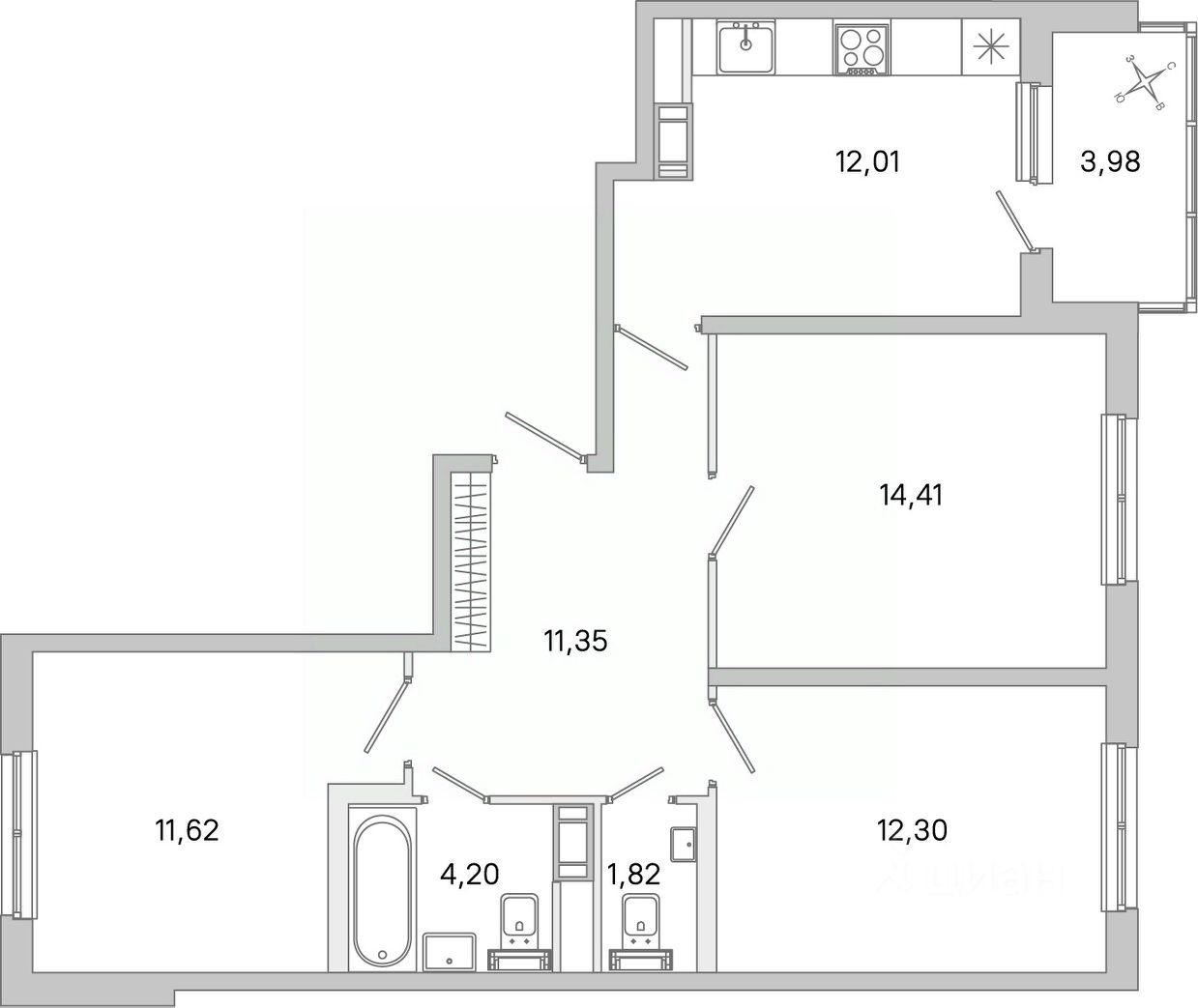 Площадь кухни12 м²