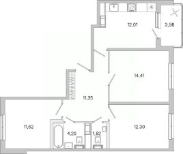 Общая площадь67,71 м²