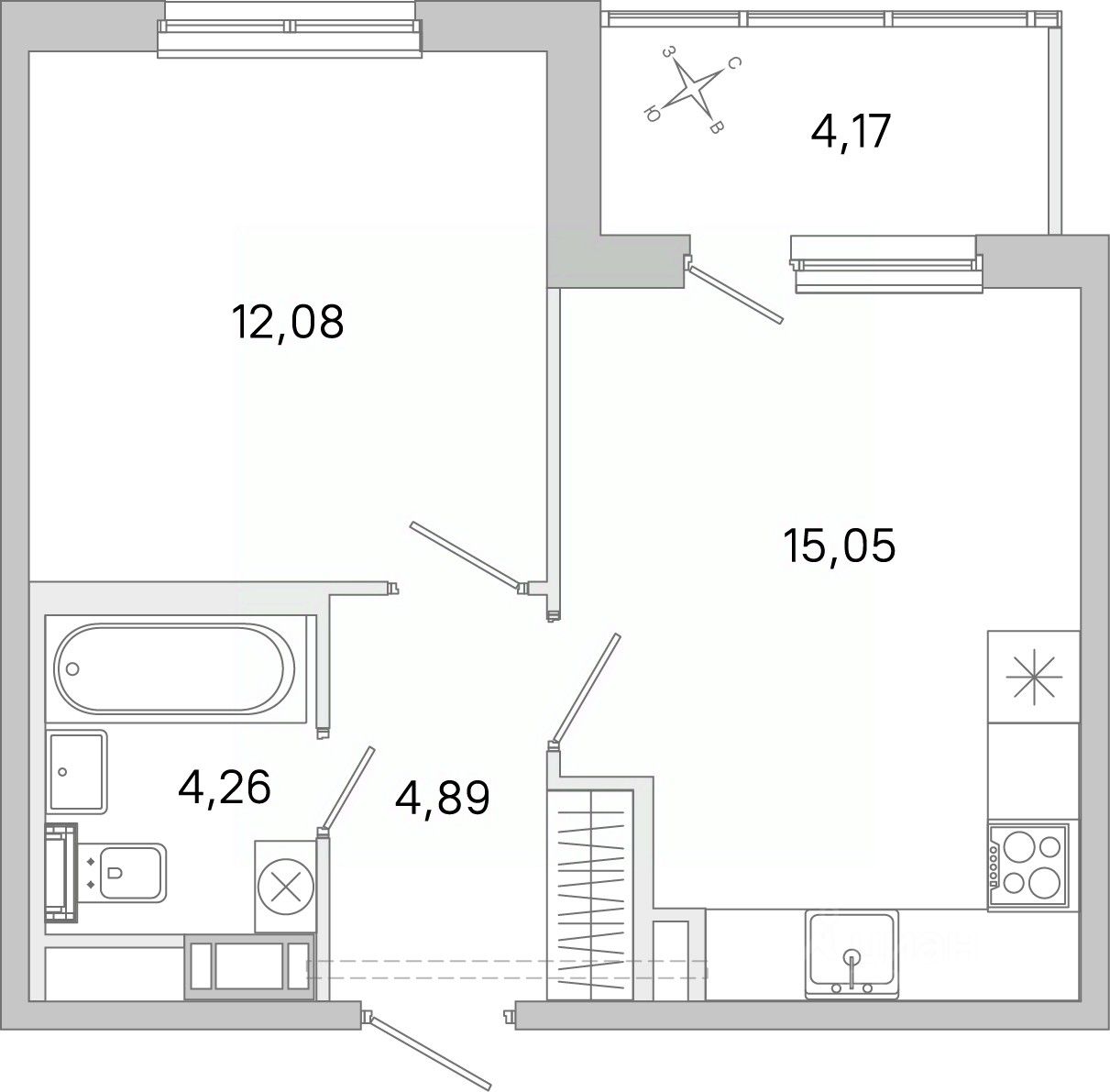 Площадь кухни15,1 м²