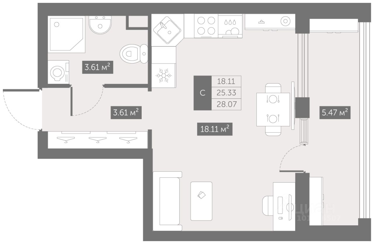 Цена со скидкой до 30% в прямой продаже от застройщика — только в этом месяце. Беспроцентная рассрочка. Студия в ЖК Up-квартал "Новый Московский" на 1-м этаже. Общая площадь 28,07. Без отделки.