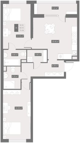 Цена со скидкой до 30% в прямой продаже от застройщика — только в этом месяце. Беспроцентная рассрочка. 2-к квартира в ЖК Up-квартал "Новый Московский" на 1-м этаже. Общая площадь 70,96. Без отделки.