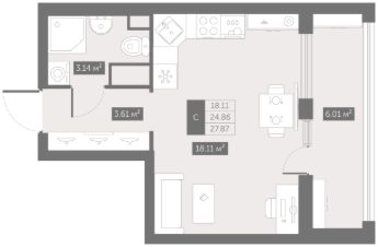 Цена со скидкой до 30% в прямой продаже от застройщика — только в этом месяце. Беспроцентная рассрочка. Студия в ЖК Up-квартал "Новый Московский" на 3-м этаже. Общая площадь 27,87. Без отделки.