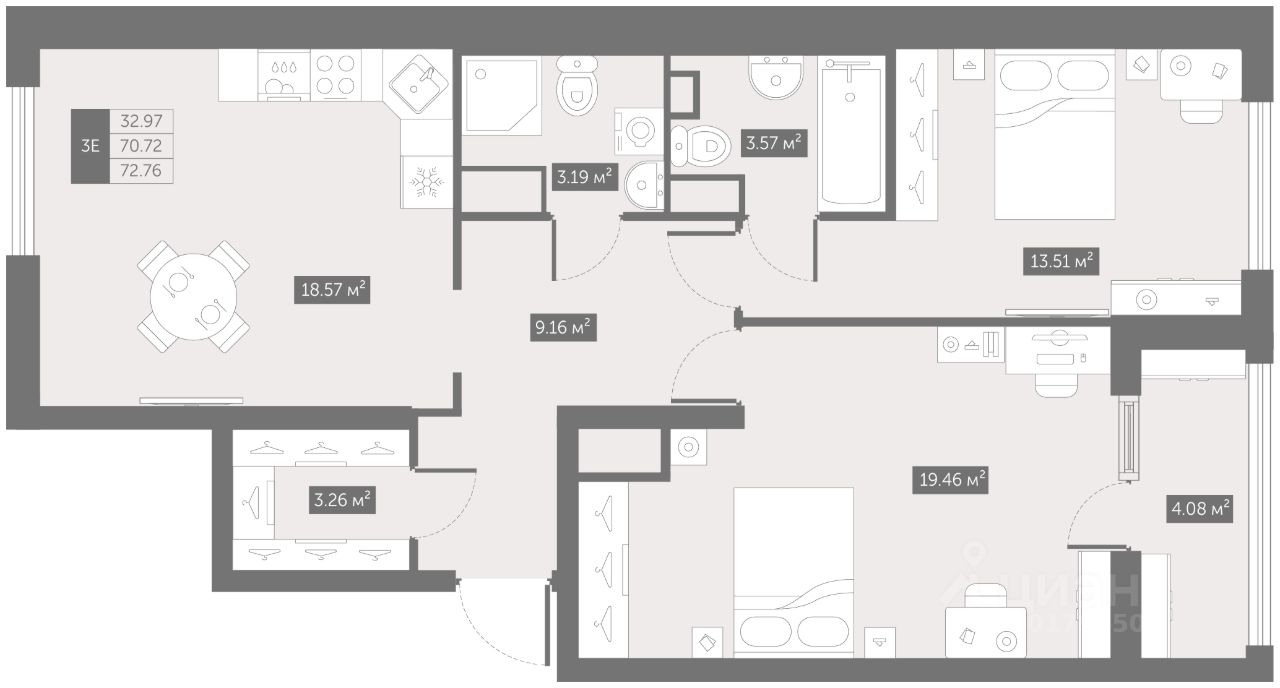 - Разнообразие планировок с преобладанием евро-формата;
