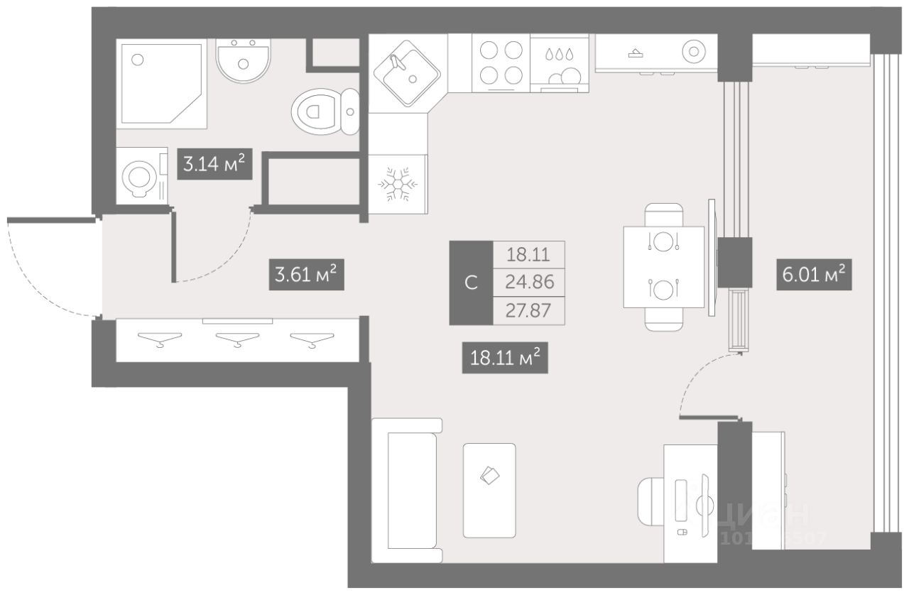 Цена со скидкой до 30% в прямой продаже от застройщика — только в этом месяце. Беспроцентная рассрочка. Студия в ЖК Up-квартал "Новый Московский" на 7-м этаже. Общая площадь 27,87. Без отделки.