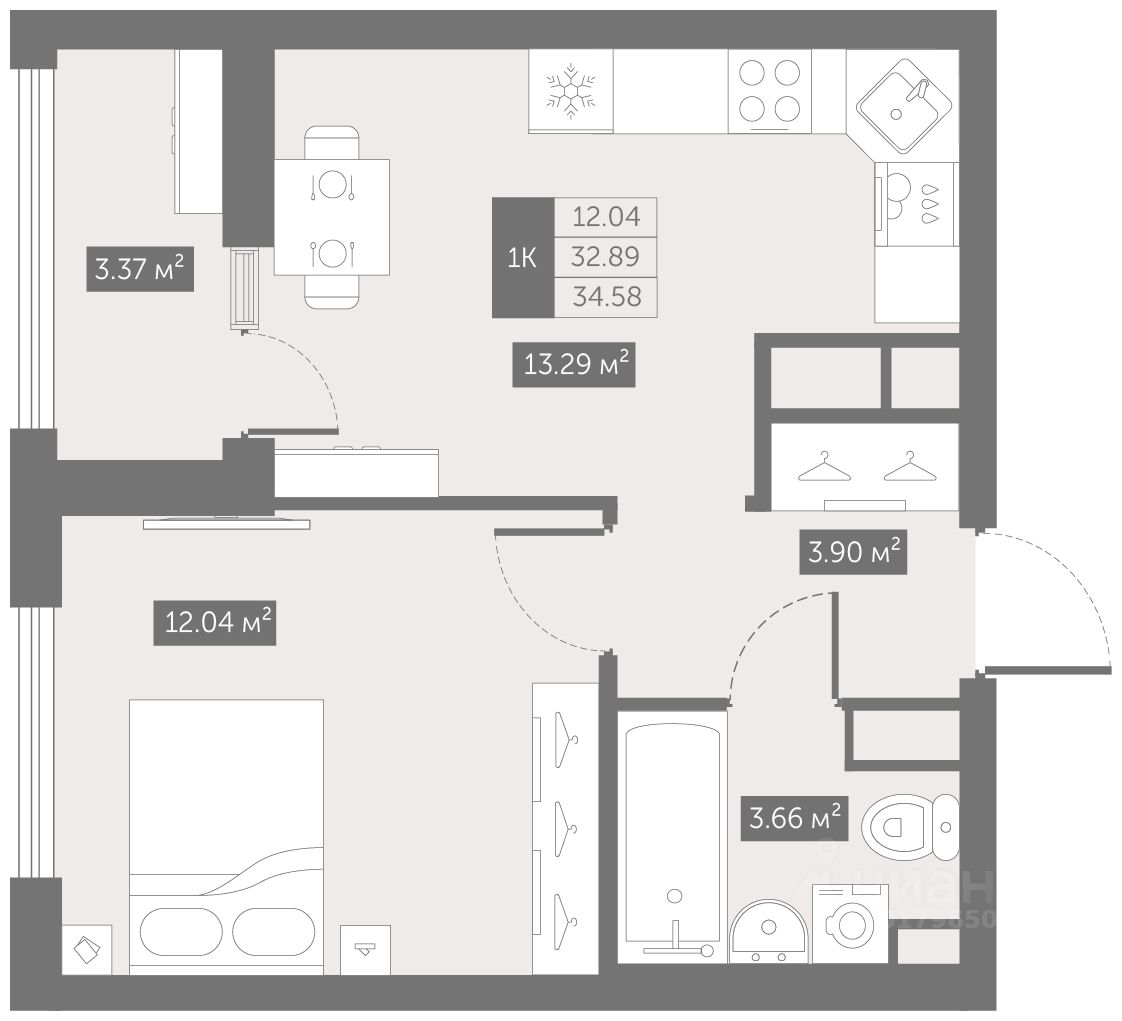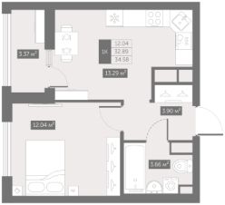 Цена со скидкой до 30% в прямой продаже от застройщика — только в этом месяце. Беспроцентная рассрочка. 1-к квартира в ЖК Up-квартал "Новый Московский" на 8-м этаже. Общая площадь 34,58. Без отделки.
