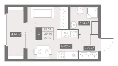 Цена со скидкой до 30% в прямой продаже от застройщика — только в этом месяце. Беспроцентная рассрочка. Студия в ЖК Up-квартал "Новый Московский" на 6-м этаже. Общая площадь 22,77. Чистовая отделка.