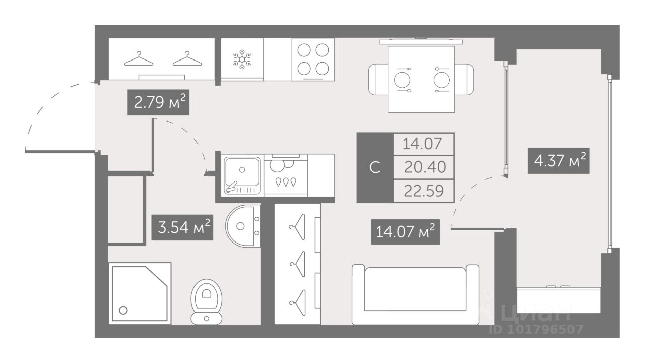 Цена со скидкой до 30% в прямой продаже от застройщика — только в этом месяце. Беспроцентная рассрочка. Студия в ЖК Up-квартал "Новый Московский" на 8-м этаже. Общая площадь 22,59. Чистовая отделка.