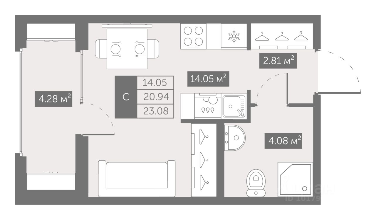 Цена со скидкой до 30% в прямой продаже от застройщика — только в этом месяце. Беспроцентная рассрочка. Студия в ЖК Up-квартал "Новый Московский" на 1-м этаже. Общая площадь 23,08. Без отделки.