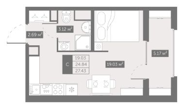Цена со скидкой до 30% в прямой продаже от застройщика — только в этом месяце. Беспроцентная рассрочка. Студия в ЖК Up-квартал "Новый Московский" на 3-м этаже. Общая площадь 27,43. Без отделки.