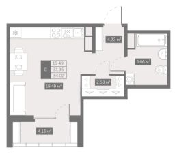 Цена со скидкой до 30% в прямой продаже от застройщика — только в этом месяце. Беспроцентная рассрочка. Студия в ЖК Up-квартал "Новый Московский" на 3-м этаже. Общая площадь 34,17. Без отделки.