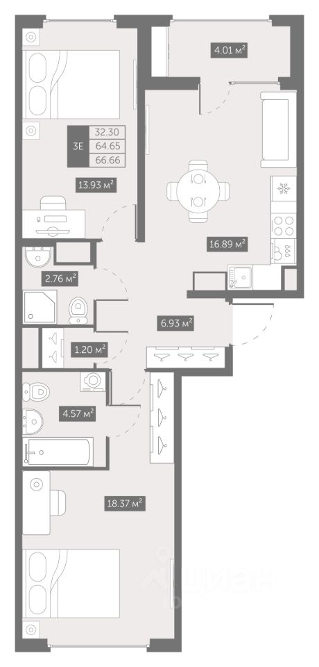 Цена со скидкой до 30% в прямой продаже от застройщика — только в этом месяце. Беспроцентная рассрочка. 2-к квартира в ЖК Up-квартал "Новый Московский" на 3-м этаже. Общая площадь 66,66. Без отделки.