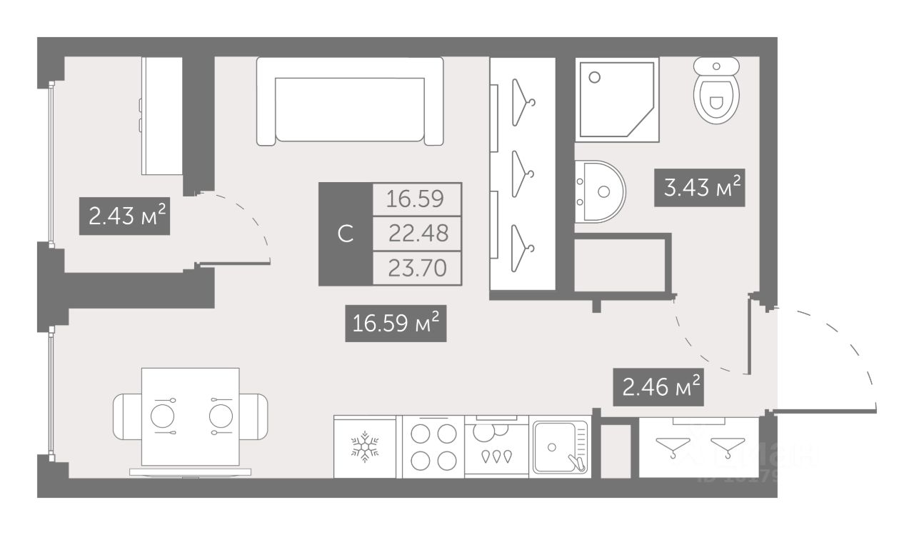 Цена со скидкой до 30% в прямой продаже от застройщика — только в этом месяце. Беспроцентная рассрочка. Студия в ЖК Up-квартал "Новый Московский" на 4-м этаже. Общая площадь 23,76. Без отделки.