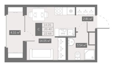 Цена со скидкой до 30% в прямой продаже от застройщика — только в этом месяце. Беспроцентная рассрочка. Студия в ЖК Up-квартал "Новый Московский" на 6-м этаже. Общая площадь 22,68. Без отделки.