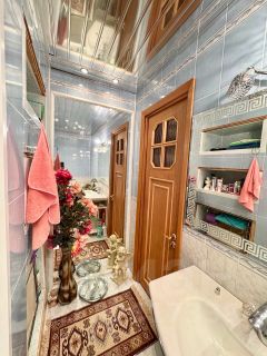 В квартире выполнен ремонт с использованием качественных материалов в классических теплых оттенках. Стеклопакеты, ламинат, кафельная плитка. В зоне готовки теплые полы. Двери из массива. Надежная входная дверь. Различные варианты освещения. Комнаты все изолированные. Наличие более чем одного санузла значительно повышает комфорт проживания. В одной из комнат имеется выход на застекленную лоджию, где удачно расположились множество комнатных цветов, создав атмосферу зимнего сада. Есть отдельное помещение, где обустроена зона стирки и хранения. Прихожая визуально отделена арочной конструкцией.