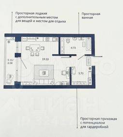 Два окна позволили зондировать пространство на две комнаты ( можно кухонную зону разграничить с жилой), большой санузел в котором легко устанавливается ванна ( сейчас ее демонтировали, но можем купить и установить заново). Просторная прихожая, что тоже редкость для студии, в которой можно оборудовать большую гардеробную. И очень большой балкон во всю ширину квартиры - дополнительная теплоизоляция и зимой нет необходимости включать отопление , а это значительная экономия на коммунальных платежах!