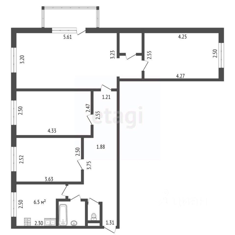6,5 м²