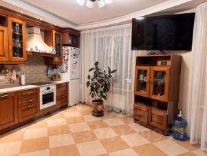 Просторная кухня-гостиная 32 кв.м. — идеальное место для отдыха и приёма гостей. Вся современная техника (холодильник, плита, духовка, вытяжка, посудомоечная машина) остаётся.
