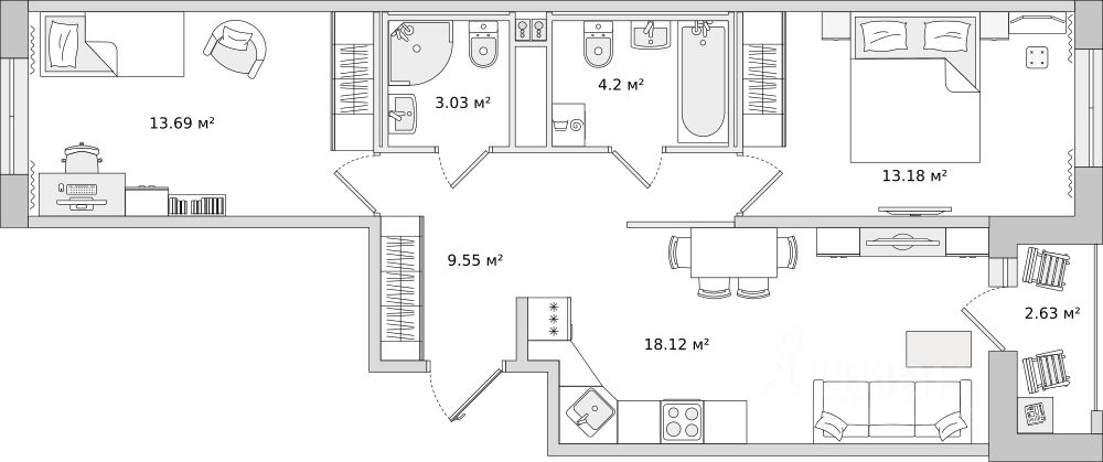 При покупке квартиры без участия агентов дарим сертификат новосела в магазин HOFF на сумму 50 000 рублей. Им можно оплатить не более 15% от суммы покупки.