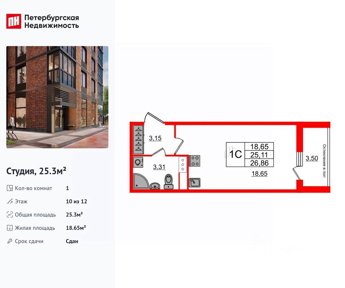 Продается просторная студия от застройщика в жилом комплексе "Сенат" в престижном Московском районе.