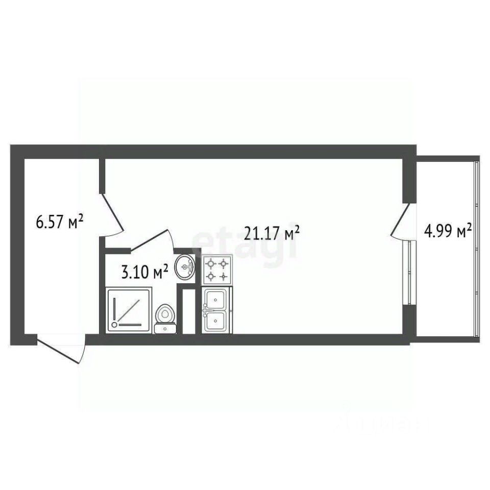 Светлая студия площадью 32,3 м2 Расположена в поселке Ленсоветовский, в современном ЖК "Добрыня".