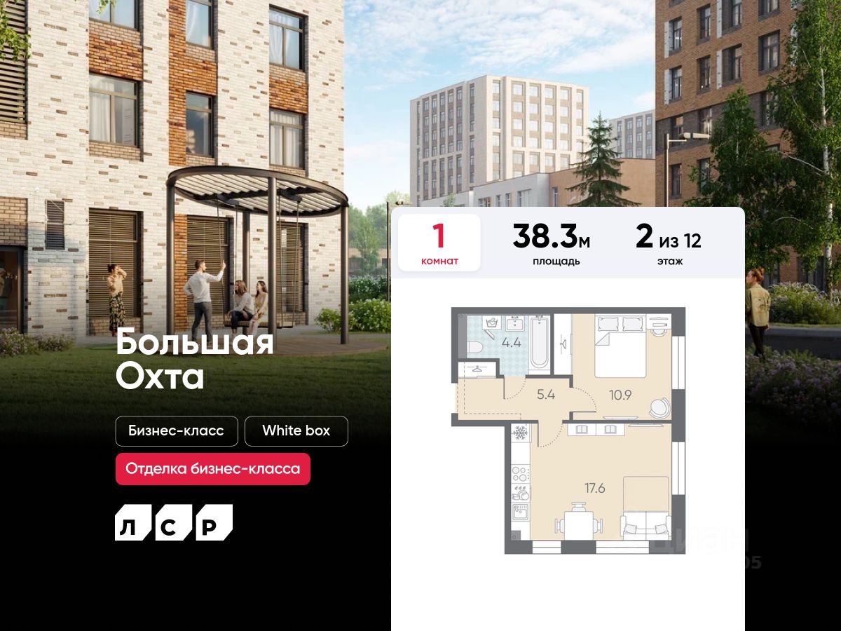 Продаётся 1-комнатная квартира в ЖК "Большая Охта" на 2 этаже. Общая площадь составляет 38.30 кв. м. Квартира с white box отделкой. Жилой комплекс "Большая Охта" располагается по адресу Санкт-Петербург, Красногвардейский.