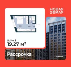 1-комн. квартира-студия с предчистовой отделкой в ЖК "Новая Земля" на 2 этаже. Общая площадь: 19.27 кв.м., площадь гостиной 14.93 кв.м., из которых 4.49 кв.м. выделено под кухонную зону. Все окна выходят на одну сторону. В квартире один совмещенный санузел. Высота потолков 2.85 м.