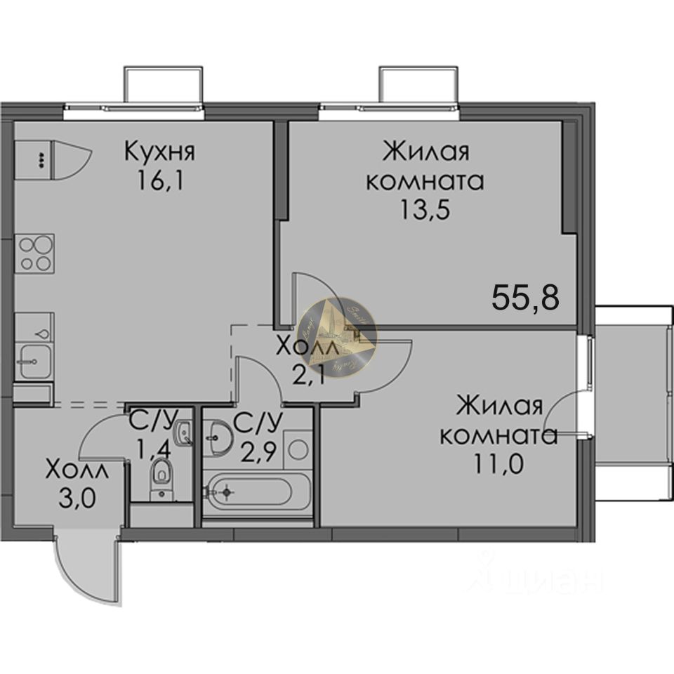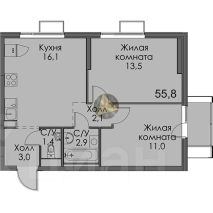 - Общая площадь квартиры 55.8 м2