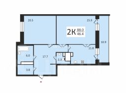 - Просторные жилые комнаты: 20,5 и 25,9 кв.м