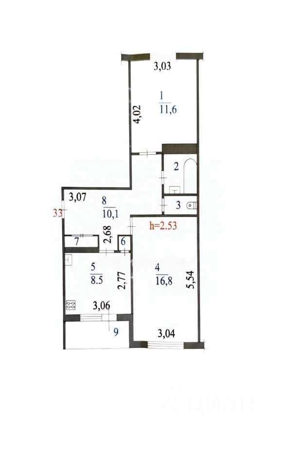 Квартира очень теплая и с ДЕЙСТВИТЕЛЬНО КОМФОРТНОЙ планировкой: две изолированные комнаты (11.6 м. кв. + 16,8 м. кв.), выходят на разные стороны