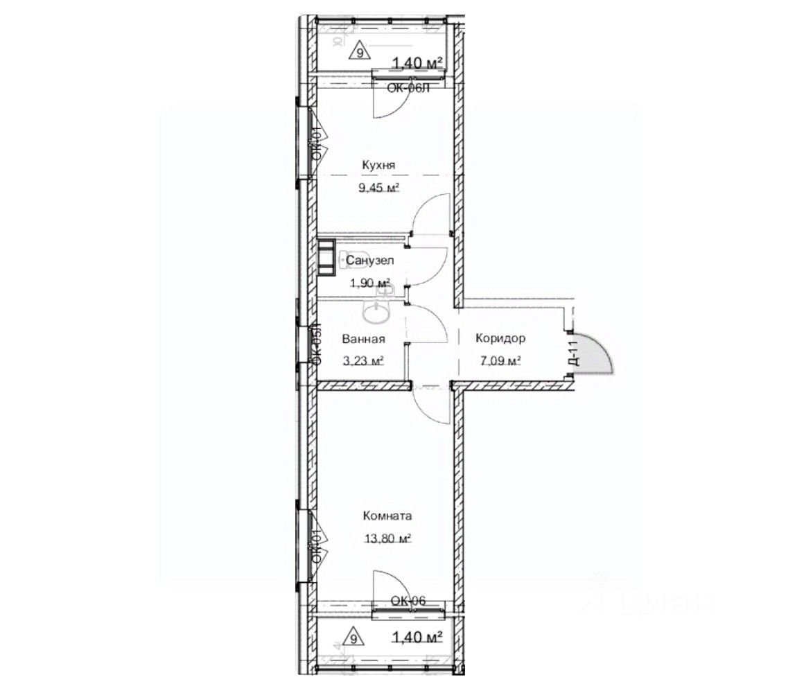 Двухсторонняя планировка квартиры с множеством окон, площадью 38 кв. метров, продумана для комфортной жизни: