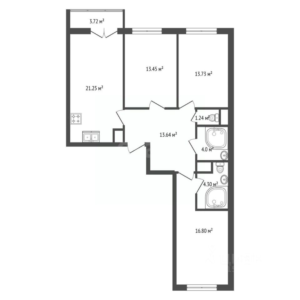 • Просторная кухня (21 м²) с выходом на балкон идеальное место для кулинарных шедевров и утреннего кофе на свежем воздухе.