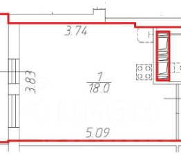 Общая площадь с учетом лоджии 29,6 кв.м.
