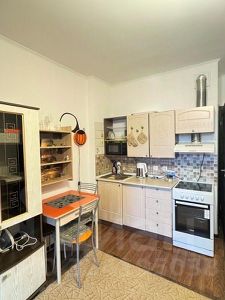Квартира с ремонтом и мебелью, остаётся кухня (фасады мдф, фурнитура с доводчиками), плита электрическая, раскладной диван, шкафы для хранения вещей и т.д.