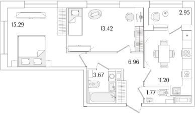 Продаётся 2-комнатная квартира в строящемся доме (Корпус 1 (секции 1, 2, 3)), срок сдачи: I-кв. 2029, общей площадью 53.79 кв.м., на 14 этаже. Новый жилой комплекс "Аурум" от застройщика "РосСтройИнвест" расположен по адресу: г. Санкт-Петербург, Кондратьевский проспект