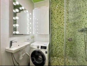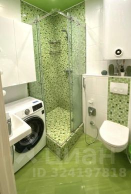 Совмещённый, добротный, полностью отделан плиткой в индивидуальном стиле